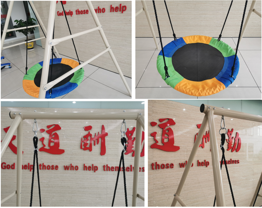 Strong steel tube garden swing set with high quality nest swing can be a perfect gift for kids. Can be a very good play facility in home garden.